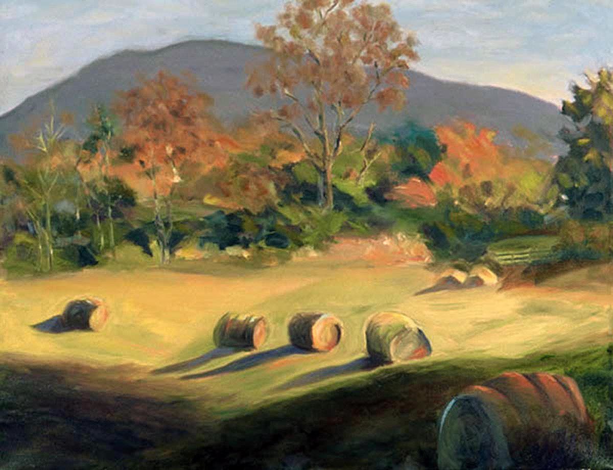 Hay Bales in Autumn, Earlysville, VA, Oil on canvas, 37 x 29 inches